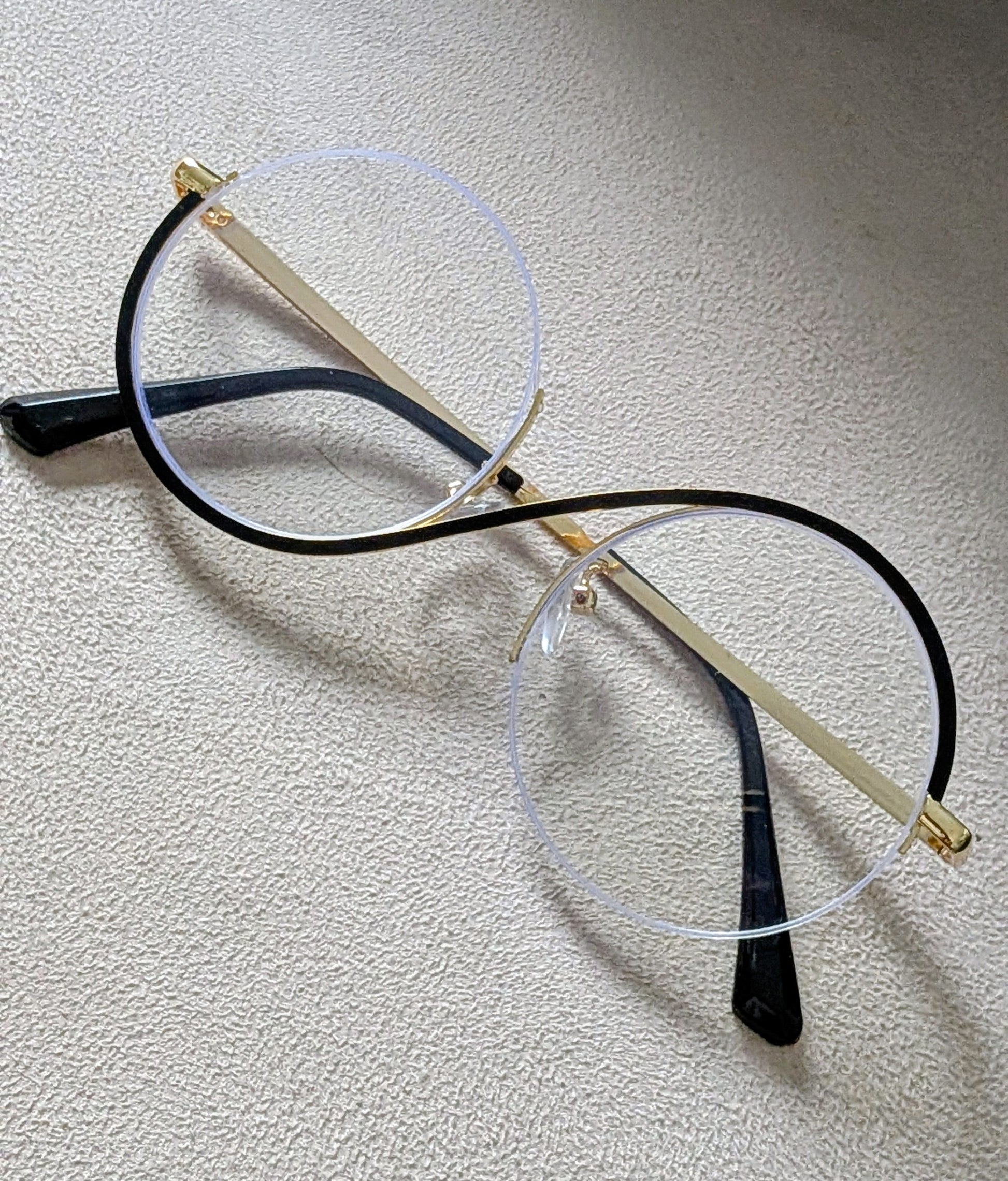 Introducing our Classy New Blink Twice Fashion Frames, perfect for the fashion-forward and sophisticated individual. Each frame features a clear lens with a sleek black trim and hint of gold, creating a modern and trendy look. Circle in shape...Upgrade your eyewear game with these fashionable frames.